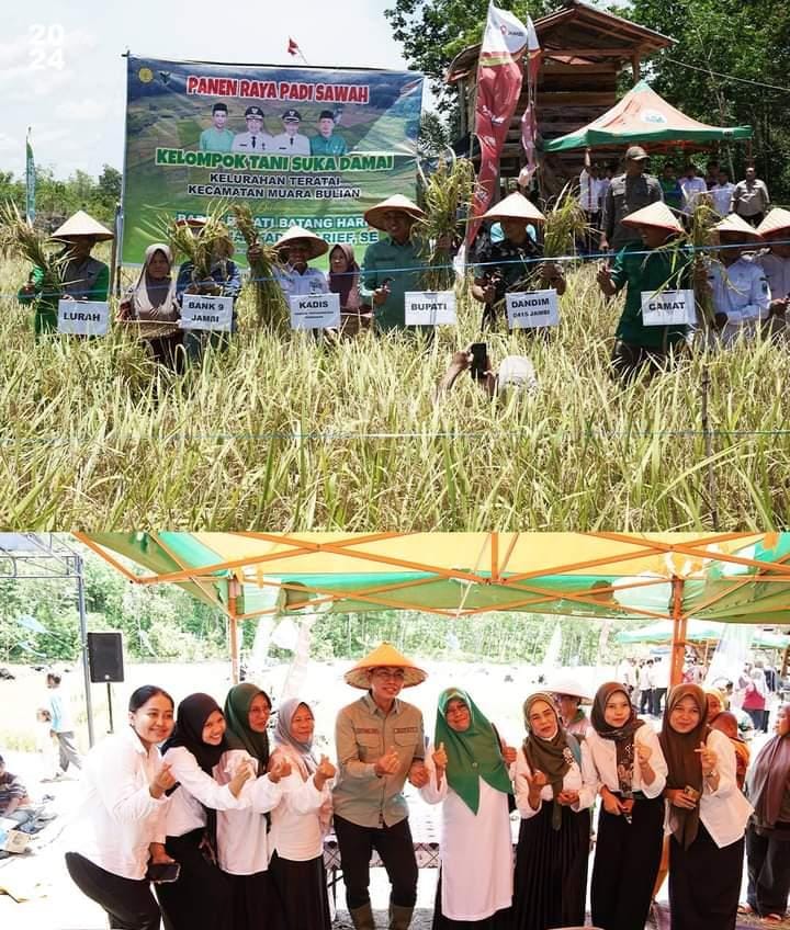 MATAJURNALIS.CO.ID BATANGHARI – Bupati Batanghari Muhammad Fadhil Arief menghadiri panen raya Kelompok Tani Suka Damai Kelurahan Teratai Kecamatan Muara Bulian pada Rabu, (18/9/2024).