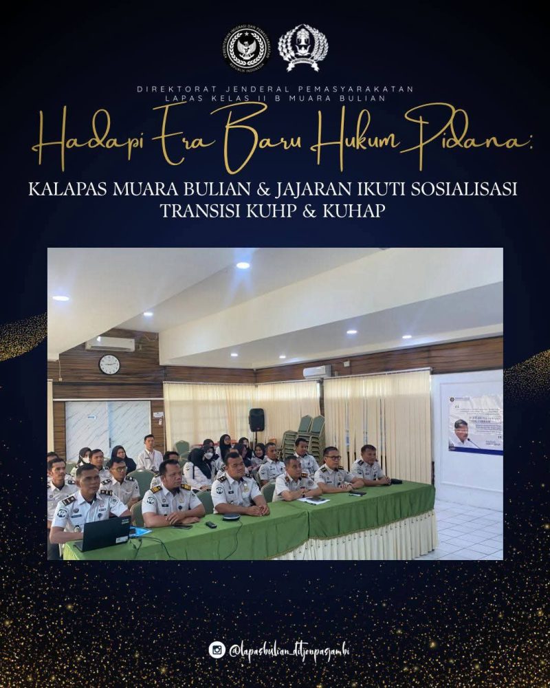 Muara Bulian-Matajurnalis.co.id Rabu Tgl 7 Januari 2026 — Dalam rangka menghadapi masa transisi perubahan hukum pidana nasional, Lembaga Pemasyarakatan (Lapas) Kelas IIB Muara Bulian mengikuti Zoom Meeting terkait langkah-langkah strategis pelayanan tahanan yang diselenggarakan oleh Direktorat Jenderal Pemasyarakatan (Ditjen PAS), Rabu (7/1).