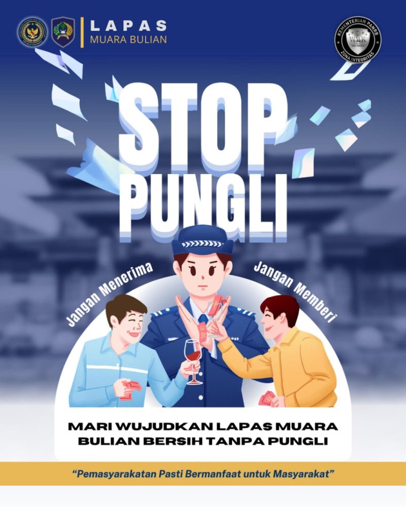 Muara Bulian -Matajurnalis.co.id15 Oktober 2025— Lapas Kelas IIB Muara Bulian terus menunjukkan komitmennya dalam menciptakan lingkungan pemasyarakatan yang bersih dari pungutan liar (pungli). Melalui gerakan “Stop Pungli”, pihak lapas berupaya membangun budaya integritas dan pelayanan yang transparan bagi seluruh warga binaan serta masyarakat.